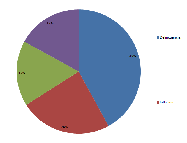 En tanto que un 24 por ciento considera a la inflación como su mayor preocupación. La escasez y la recesión económica ocupan un 17 por ciento en la escala.