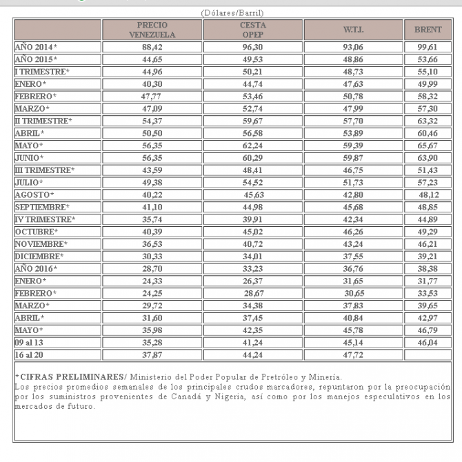 Cesta petrolera venezolana gana 2,59 y sube a 37,87 dólares