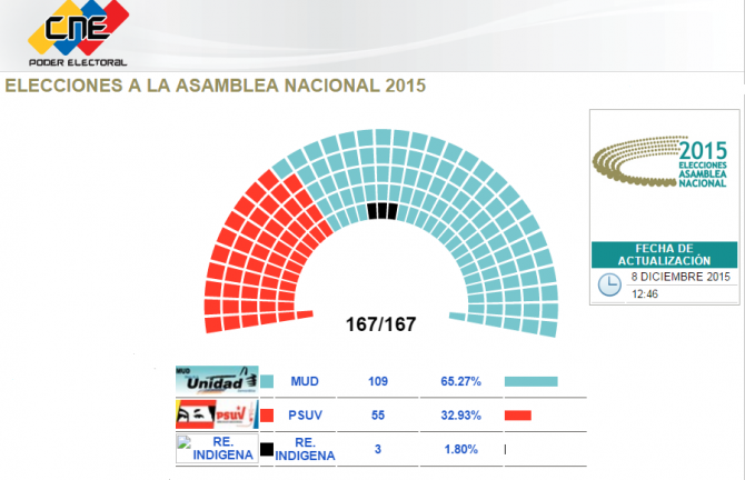 CNE: Oposición obtuvo 112 diputados mientras que el Psuv 55