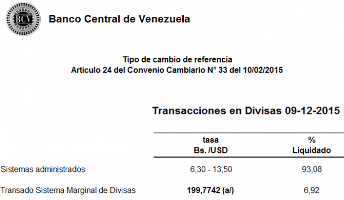 El Simadi representó el 6,88 por ciento de lo liquidado en divisas, mientras que las tasas más bajas de 6,92 bolívares y de 13,50 bolívares el 93,08 por ciento.