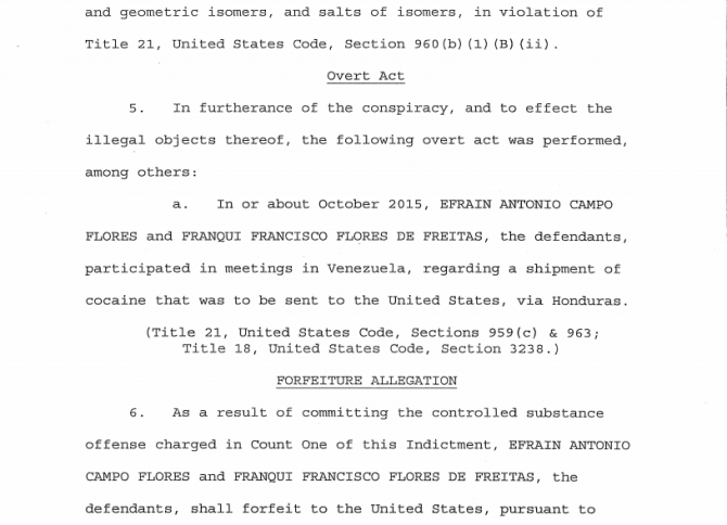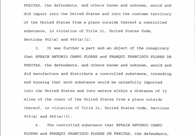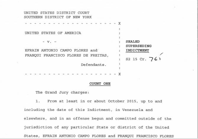 Se filtra la detención por escrito de los familiares de Cilia Flores, Efraín Antonio Campo Flores y Francisco Flores de Freites, quienes se les imputa cargos por tráfico de de droga) con destino Estados Unidos.