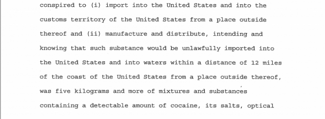 Michael Vigil, exjefe de Operaciones Internacionales de la DEA, informó de la captura a través de fuentes federales de alto nivel del Gobierno estadounidense. Vigil asegura que este país era el destino final de la droga, pasando antes por Honduras y México.