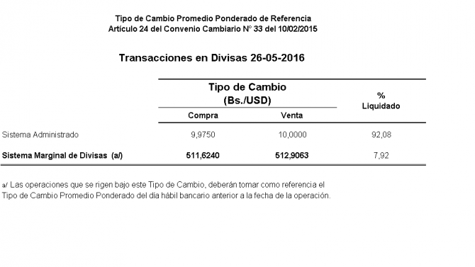En tanto que el sistema administrado permaneció en 10 bolívares por dólar.