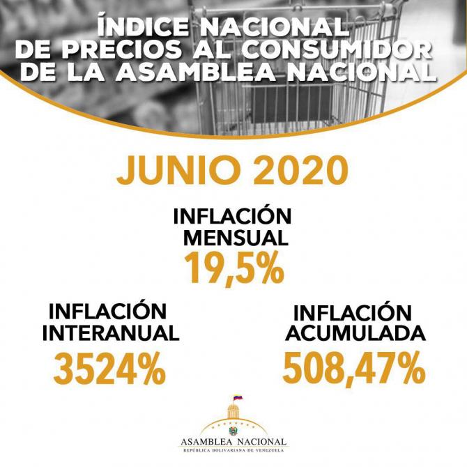 La inflación no se detiene. Los últimos datos de la Asamblea Nacional muestran que la inflación de junio se ubicó en 19,5% y la acumulada en 508,47%. Mientras que el índice interanual se ubicó 3.524%, según los datos del congreso.