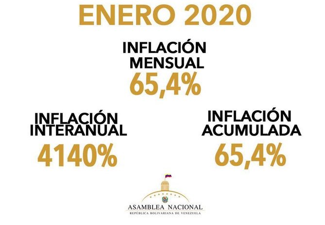 La inflación de enero alcanzó 64,5%, impulsada por la aceleración del uso del petro, según el Índice Nacional de Precios al Consumidor de la Asamblea Nacional bajo la directiva de Juan Guaidó.