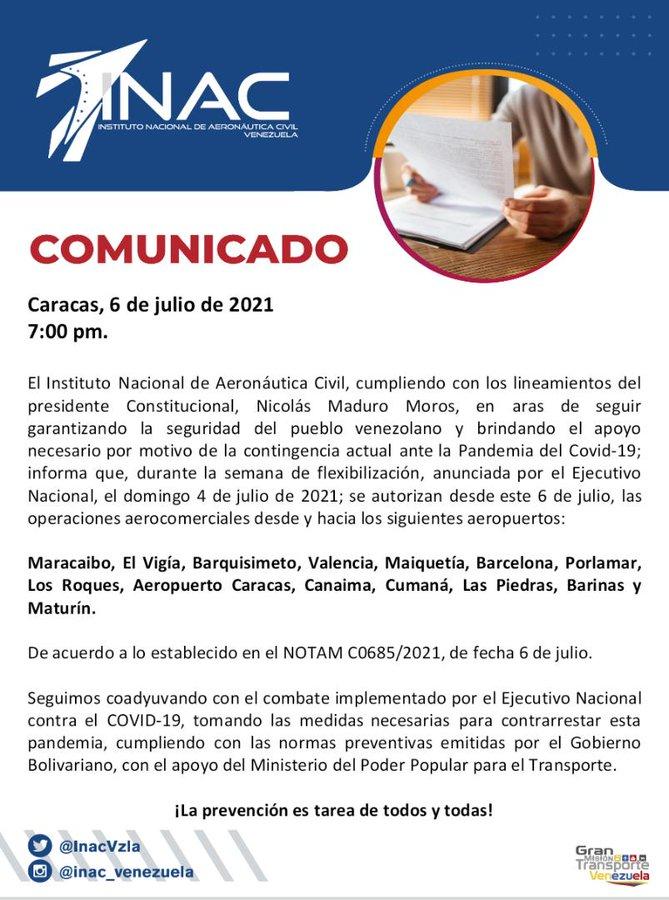Anteriormente sólo estaban permitidos los vuelos aerocomerciales desde y hasta los aeropuertos de Porlamar, Los Roques y Canaima.