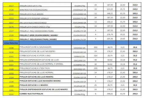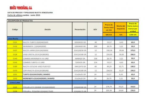 La compañía anunció que las distintas presentaciones de Nucita y Pirulín tendrán precio justo. Nucita tubito costará Bs 60, meriendita Bs. 30 y Nucita jarra Bs. 370, mientras que el Pirulín de lata tendrá un costo de Bs. 370 y el pequeño Bs. 280.