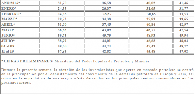El promedio de la cesta venezolana en el año es de 31,70 dólares, lo que significa un recorte de -12,95 dólares con respecto a 2015, que representó 44,65 dólares.