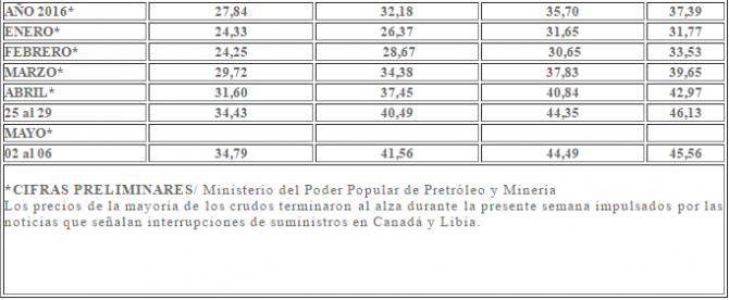 “Los precios de la mayoría de los crudos terminaron al alza durante la presente semana impulsados por las noticias que señalan interrupciones de suministros en Canadá y Libia”, señaló el ministerio.