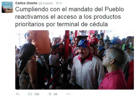 A través de su cuenta en la red social twitter @czosorio, el ministro de alimentación indicó que la medida fue retomada para cumplir con el mandato del pueblo.