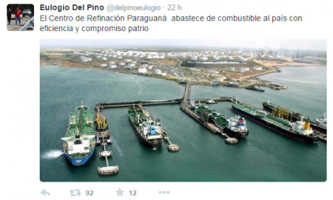 Reiteró Del Pino que Pdvsa apuntó a través de su cuenta oficial en la red social Twitter que la empresa en Paraguaná refina hidrocarburos con tecnología de punta y de calidad, para cubrir el 75% de la demanda nacional de combustible.