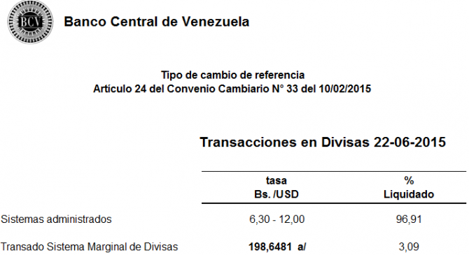 Tasa Simadi cerró en Bs 198,64 (lunes, 22 de junio)