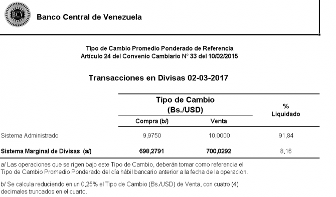 La tasa del Sistema Marginal de Divisas (Simadi) superó la barrera de los 700 bolívares, según la cotización del jueves disponible en la página de internet del Banco Central de Venezuela (BCV).