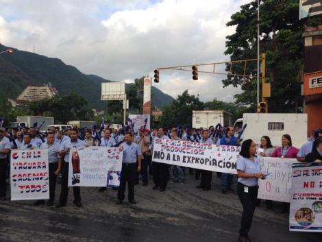 Los trabajadores de Pepsi Cola protestaron en la zona industrial de La Yaguara, en Caracas, en rechazo a las medidas estatales por las que pretenden la construcción en el lugar de edificaciones destinadas a la gran misión vivienda Venezuela.