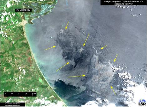 El biólogo marino Eduardo Klein mostró unas imágenes satélitales el 10 de agosto a las 11 de la mañana en las que se observó una mancha frente a la refinería El Palito y dijo que el hidridrocarburo seguía extendiéndose hacia el mar, sin que se haya observado alguna actividad de recolección o contención.