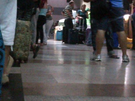 Los menos afortunados seguían en el peregrinaje, y no precisamente de una procesión religiosa. El aeropuerto de Margarita es el más vivo ejemplo de ello, aunque seguramente no el único: gente durmiendo en el piso con sus equipajes como almohadas o sentados en el suelo por el dolor en las piernas por la larga espera, caras estiradas y agotadas. Incluso apoyando la comida rápida en el suelo para no alejarse de la posibilidad de volver a tierra firme.