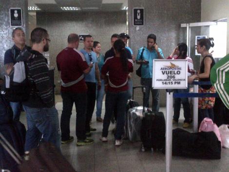 A las 11 y 15 de la mañana, los pasajeros de Aeropostal tenían su propio inventario artesanal de 40 pasajeros con ganas de salir de Margarita.