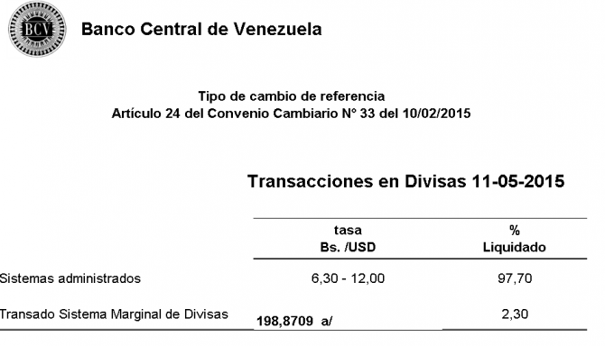 La tasa Simadi representó el 2,35 por ciento de lo liquidado, mientras que Cencoex a 6,30-12 bolívares el 97,65 por ciento.