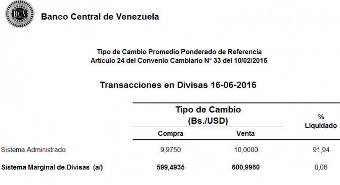 El tipo de cambio flotante Dicom superó la barrera psicológica de los 600 bolívares y se ubicó en 600,996 bolívares por dólar, según información del Banco Central de Venezuela, un alza de 398,056 bolívares desde que inició operaciones.