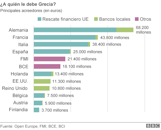 La petición del presidente de Grecia Tsipras, era la prórroga para evitar el impago al Fondo Monetario Internacional. Y a pesar de la negativa y declaración de default, la deuda pública griega asciende a 400.000 millones de euros (unos US$441.000 millones), un 180% de su PIB. Calificada por Tsipras “insostenible” . Pero para que el sistema bancario sea recapitalizado, Grecia necesitaría tener acceso al fondo del Mecanismo Europeo de Estabilidad (ESM, por sus siglas en inglés), creado en septiembre de 2012 y con una capacidad de préstamo máximo de 500.000 millones de euros (unos US$551.000 millones).