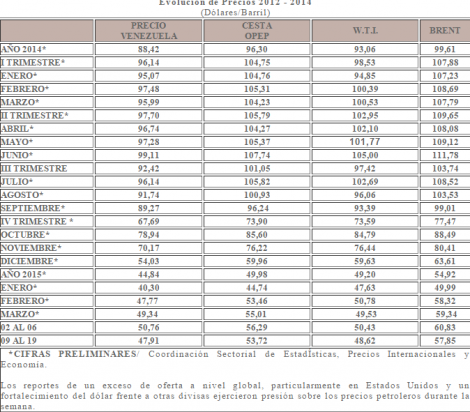 El promedio anual se ubicó en 44,84 dólares por barril casi la mitad de lo que cotizó el petróleo en el 2014 que promedió 88,42 dpb.