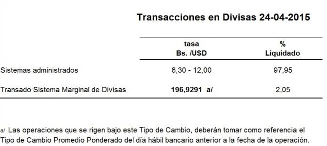 Simadi cerró en Bs 196,9291 (viernes, 24 de abril)
