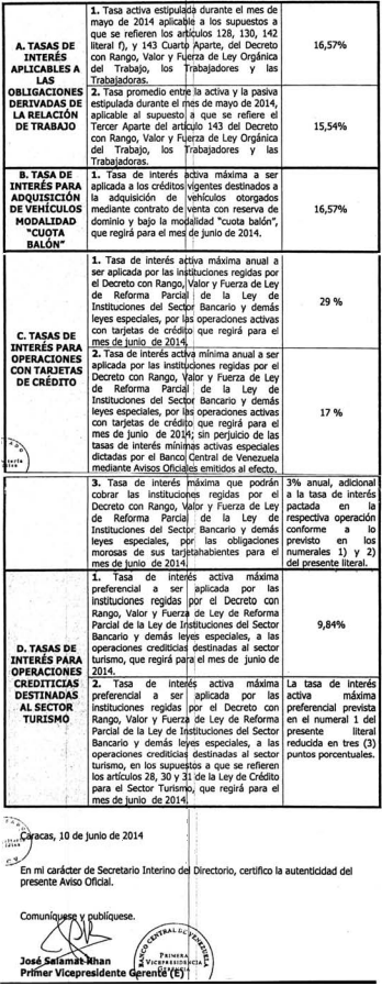 Tasa de interés activa máxima para adquisición de vehículos en modalidad “cuota balón” se calculará a 16,57% desde junio. Así lo expuso el Banco Central de Venezuela (BCV) en Gaceta Oficial número 40.431 de fecha 11 de junio de 2014. La única tasa que se mantuvo intacta fue la aplicable a operaciones con tarjetas de crédito.