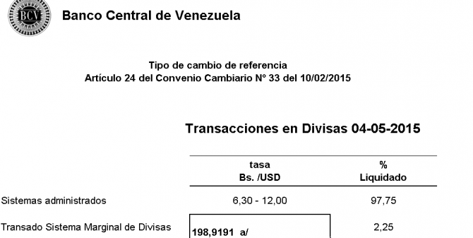 El Simadi representó el 2,25 por ciento de lo liquidado en cuanto a la demanda de divisas, mientras que la tasa preferencial de 6,30 bolívares por dólar y la del Sicad 12 de bolívares el 97,75 por ciento.