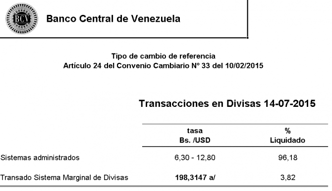 Tasa Simadi cierra en Bs 198,3147 (martes, 14 de julio)