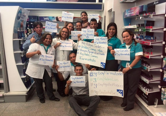 En las fotos se aprecia cómo los empleados de distintas regiones del país y de diferentes áreas de trabajo protestan pacíficamente en sus puestos de trabajo con carteles y pendones que dicen #YoSoyPedro, #YoSoyAgustín, #YoSoyFarmatodo. A esta campaña se le han sumados usuarios por Twitter que respaldan la iniciativa.