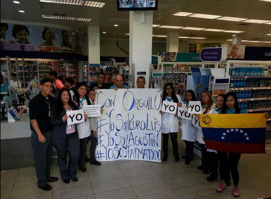 Los más de ocho mil trabajadores de la cadena venezolana Farmatodo se unieron a la protesta #YoSoyFarmatodo para apoyar a Pedro Luis Angarita, presidente de Farmatodo, y a Agustín Álvarez, vicepresidente de Operaciones, actualmente presos en el Sebin por presuntamente cometer los delitos de boicot y desestabilización de la economía.