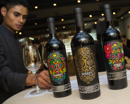 La botella retornable resalta el irresistible color vinotinto de la sangría, que al combinarse con el verde de su etiqueta transmite la calidez y frescura del verano