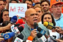 Durante la marcha del viernes convocada por la Mesa de la Unidad (MUD), se denunció que las rectoras “pesuvistas” del Consejo Nacional Electoral (CNE) estarían “preparando una trampa” al aprobar unas condiciones inconstitucionales para la realización del referéndum revocatorio.