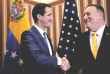 Guaidó viajó a Colombia pese a una prohibición de salida del país y se encontró con Pompeo al margen de la Conferencia Ministerial Hemisférica de Lucha contra el Terrorismo, en Bogotá. Guaidó hará un gira por Europa que incluye una reunión con el jefe de política exterior de la Unión Europea, Joseph Borrell