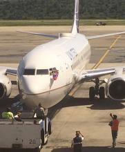 Con aplausos y una bandera de Venezuela, el avión se fue retirando de la puerta de embarque hacia la pista.