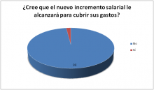El 98% de los participantes considera que el aumento del 30% del salario mínimo es insuficiente. Solo un 3% respondió estar satisfecho con la medida.