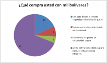 Del total de los participantes 69% respondió que esta cantidad se diluye con la inflación y que por lo tanto no es suficiente para comprar algo significativo; mientras que para el 18 por ciento mil bolívares solo alcanza para comprar vegetales o dos kilos de queso.