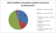 El 49% opina que el primer paso es reactivar el aparato productivo nacional. Mientas que el 32% cree que se debe eliminar el control de cambio. El 14% considera que el control de precio es negativo para la economía y por lo tanto hay que eliminarlo.
