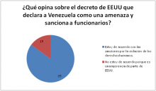 85% está a favor de las sanciones porque se trata de violación de derechos humanos, mientras que el otro 15% considera que estas acciones representan una injerencia de EEUU en asuntos internos de Venezuela.