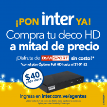 Pionera en la televisión por suscripción, Inter tiene los mejores precios del mercado, con planes adaptados a las necesidades de sus clientes, y la mayor cantidad de canales disponibles, incluyendo deportivos y en HD desde el paquete de menor costo