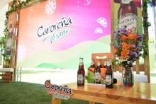 La botella retornable resalta el irresistible color vinotinto de la sangría, que al combinarse con el verde de su etiqueta transmite la calidez y frescura del verano