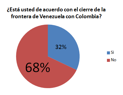 El 68% de los encuestados no está de acuerdo con el cierre de la frontera de Venezuela con Colombia. Mientras que el otro 32% si considera el cierre como positivo, según sondeo realizado por DINERO.