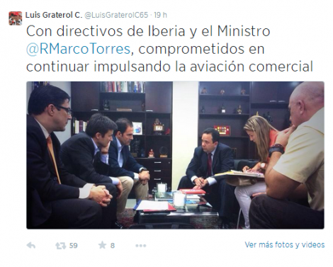 “#EnEsteMomento reunidos con directiva de Iberia y Ministro @RMarcoTorres .Aerolínea ratifica confianza en Venezuela y garantiza operaciones”, escribió el ministro a través de su cuenta en la red social.