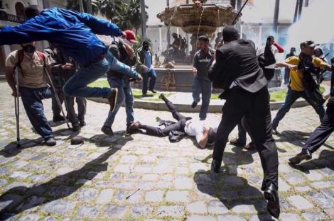 Funcionarios y periodistas también resultaron agredidos. Obviamente, la Guardia Nacional Bolivariana, encargada de brindar seguridad al poder legislativo no intervino para detener la violencia.