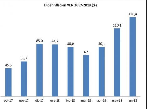 La tasa de inflación interanual se ubicó en 46.305 por ciento y en junio de 128,4 por ciento y una tasa de inflación diaria de 2,8 por ciento.