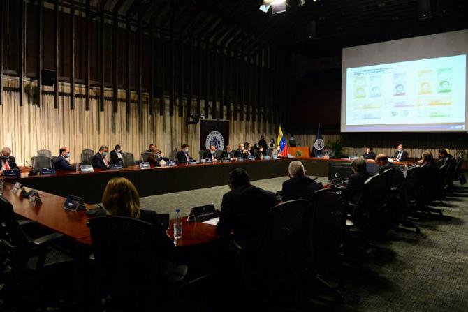El presidente del Banco Central de Venezuela (BCV), Calixto Ortega Sánchez, junto al Directorio del Instituto, sostuvo una reunión con representantes de la banca pública y privada en el contexto de la entrada en vigencia del Bolívar Digital, que regirá en el país a partir del 1° de octubre de 2021.