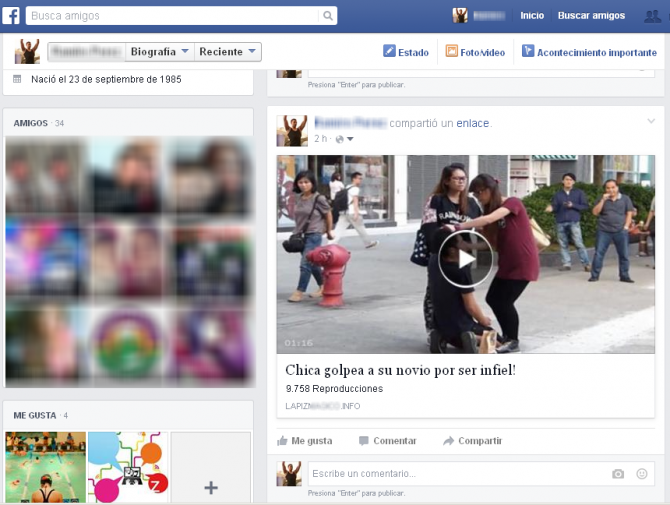 Otra diferencia con campañas anteriores, es que una vez seleccionada la publicación no se reproduce el video sino que el usuario es redirigido a otra página que solicita compartir este enlace con los contactos en su muro. Si el usuario comparte este enlace, es dirigido a otra ventana donde le pide una nueva autenticación en la red social, pero en un dominio totalmente diferente al de la red social, es decir, a una falsa página de inicio de sesión de Facebook que tiene la función de robar las credenciales de la cuenta.