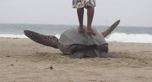 Una de las imágenes muestra al vecino del pueblo de Camurí Grande subiéndose a la tortuga para interrumpir la expulsión de huevos y la huída al mar. En otras dos fotos, se observa el intento de arrastre de la persona a la tortuga, con el fin de llevársela y de desviar su camino al océano. En la última fotografía se ve cómo surfistas de la zona auxilian a tortuga para que retorne a su hábitat.
