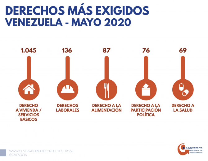 El Observatorio Venezolano de Conflictividad Social reportó más de 1.000 protestas en el país en mayo en reclamo, entre otros, a mejoras en los servicios públicos, que no fueron impedidas por el confinamiento por el brote del coronavirus. Sin embargo, la cifra es menor con respecto al resultado del mismo mes del año pasado.