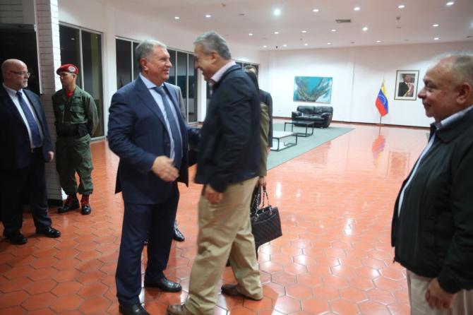 El ministro venezolano de Petróleo y presidente de PDVSA, Eulogio Del Pino, sostuvo un encuentro este domingo 20 de noviembre en el aeropuerto de Maiquetía con el presidente de la empresa rusa Rosneft, Igor Sechín, con la finalidad de concretar la participación de esa compañía en el proyecto gasífero Mariscal Sucre.